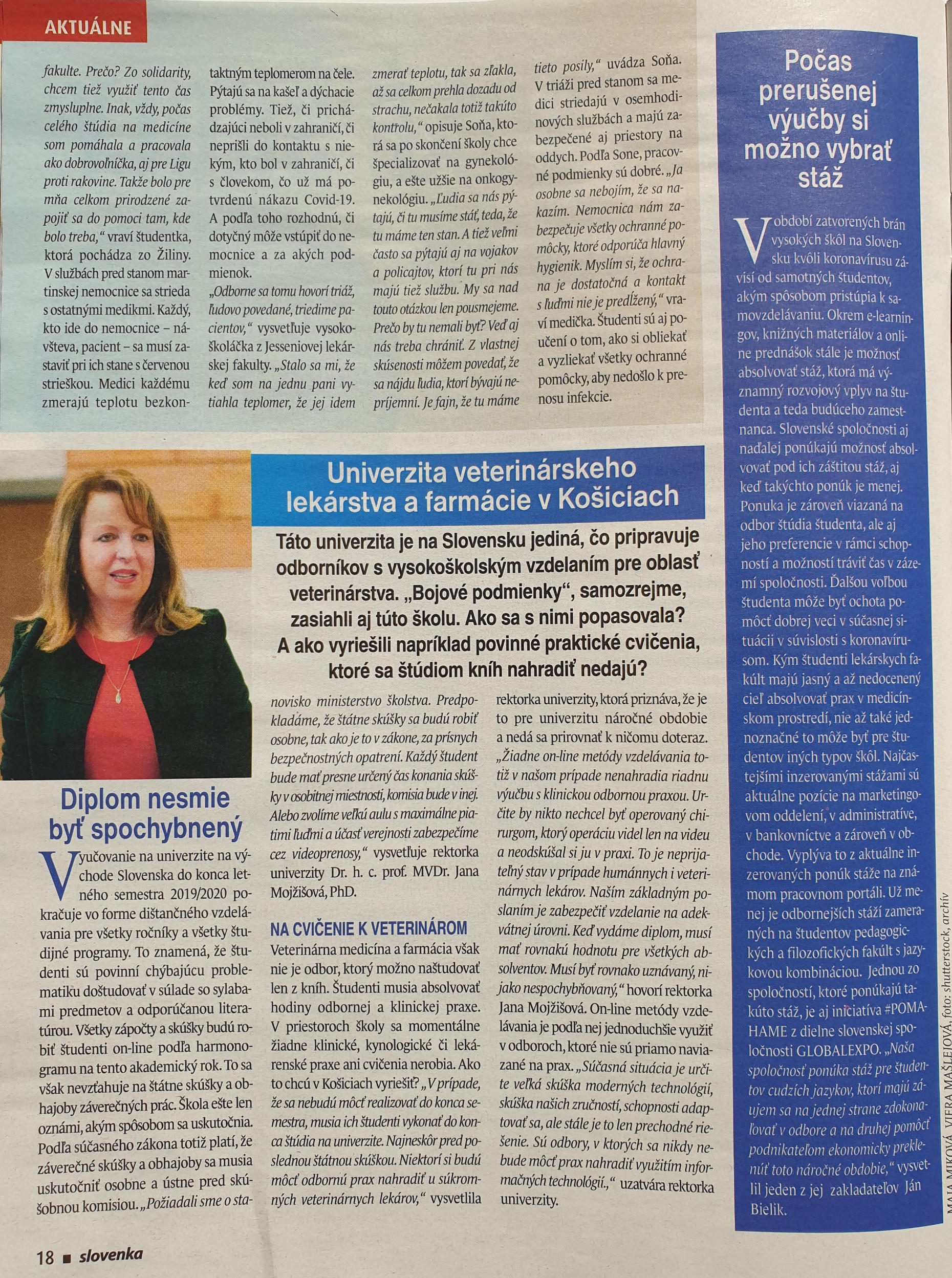 Dvojtýždenník Slovenka publikoval článok o našej spoločnosti GLOBALEXPO, že aj počas prerušenej výučby si možno vybrať stáž. Celý článok je dostupný tu:
